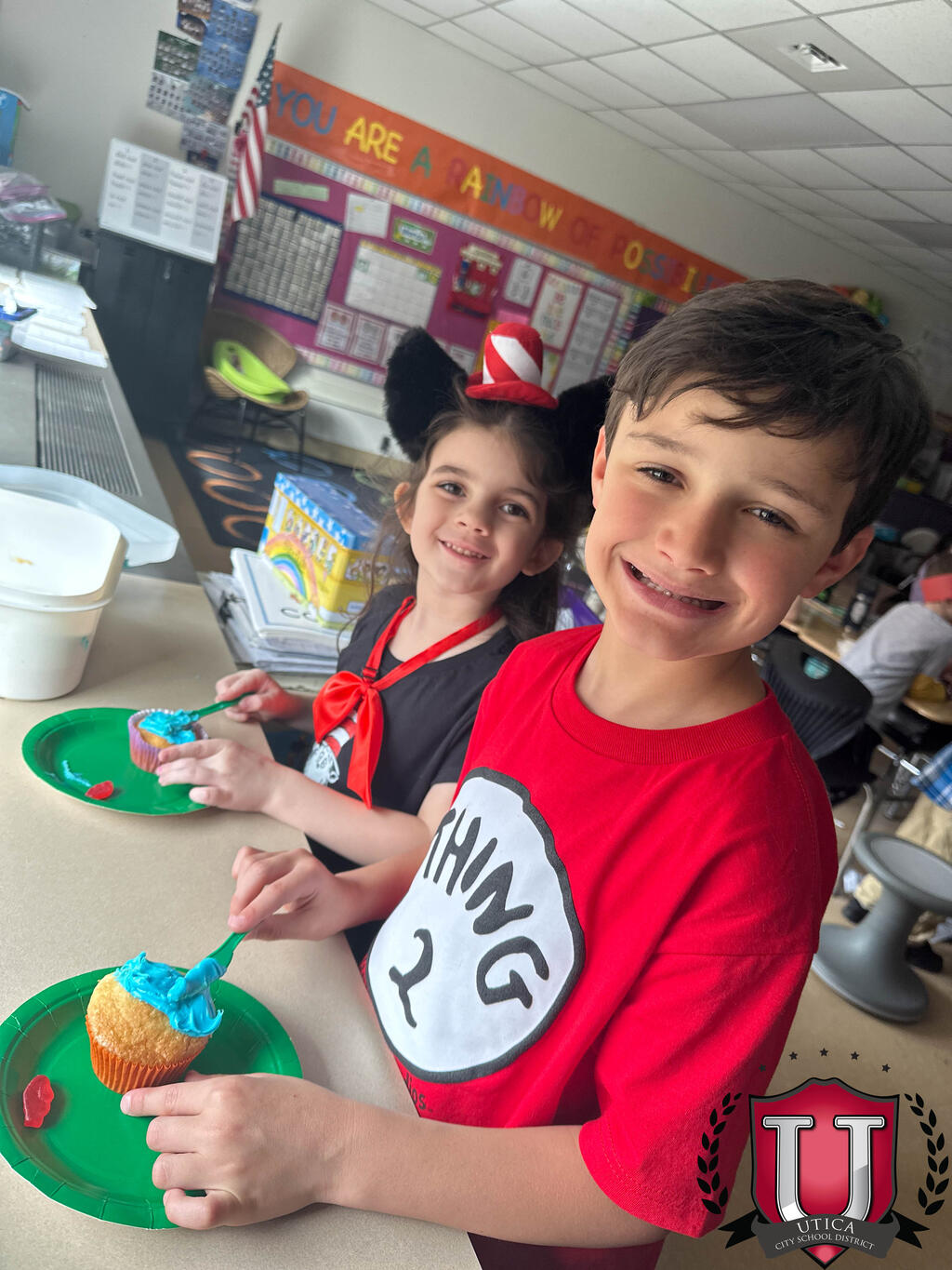 Наші першокласники відсвяткували день народження доктора Сьюза, приготувавши зелені яйця та кекси "Одна рибка, дві рибки"! Ми провели день, вивчаючи доктора Сьюза та створюючи веселі проекти на основі його історій. Нам було дуже весело!